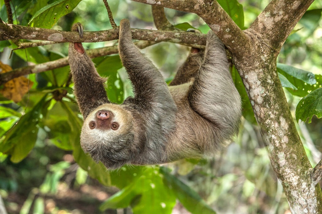 Turtles and camouflaged caiman nestle by the bank, and ashore are sloths and anteaters, and mammoth butterflies. In the evening, slipping over in the mud, I almost squash a tiny tree frog, and in the ecolodge at night, hear my only mosquito buzzing outside the net, although this is dwarfed by roars of howler monkeys, noisily objecting, I feel, to our presence